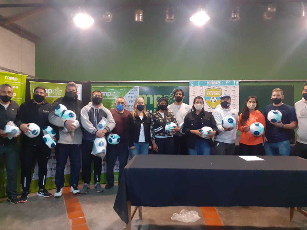 Esta mañana en el Paseo Cultural, la gestión municipal realizó una nueva entrega a los clubes deportivos locales. En esta oportunidad, cuatro clubes de fútbol que integran la Federación de Clubes fueron beneficiados con la entrega de pelotas nuevas.