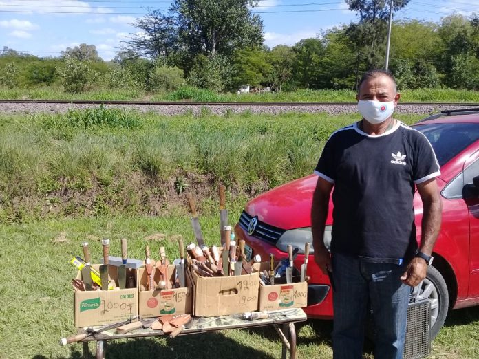 Sobre Ruta 40, a la altura del barrio La Milagrosa, el vecino Carlos Rabas ofrece cuchillos de todos los tamaños y formas a precios accesibles.