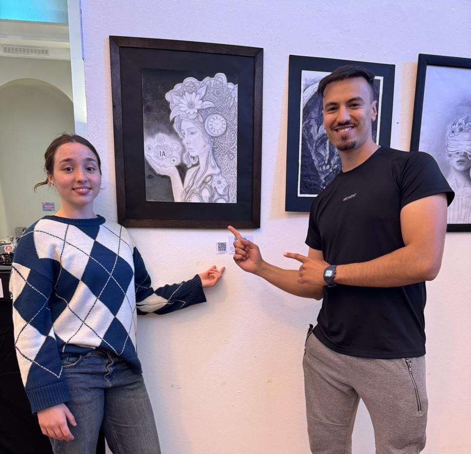 La joven nos cuenta que su dibujo le tomó más de un mes y medio. La idea central fue darle una identidad y un cuerpo a la Inteligencia Artificial. “Costaron algunas cosas pero estoy bastante contenta con el resultado”, expresó Renata y agregó que utilizó diferentes técnicas en lápiz. Por último, agradeció a su mamá y a su docente Natanael que “siempre estuvieron atrás mío, diciéndome que tendría que participar”.