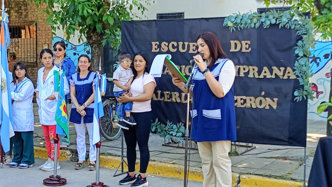 Hoy por la mañana, se realizó el acto de imposición de nombre de la Escuela de Educación Temprana N°1 que, desde el día de la fecha, lleva un reconocimiento a quien fue su asistente social Valeria Garcerón. El acto contó con la presencia de toda la comunidad educativa y con el acompañamiento de la familia de la homenajeada.