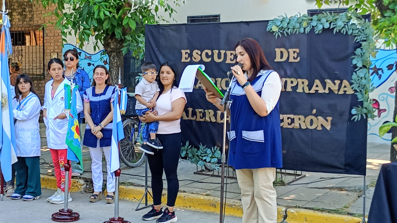 “Valeria garantizaba el derecho a la educación, a la identidad y la justicia social de todos los que concurrían”, expresó la docente Celente Dince y relató que Garcerón estuvo presente desde los comienzos del espacio. “Esta institución merece llevar con orgullo su nombre”, expresó. Por su parte, la directora María del Carmen Matteo señaló que la trabajadora “fue mucho más que un rol, un título o una función. Fue mirada atenta, un oído dispuesto, manos que acompañan y corazón que abraza”. “Queremos que su huella permanezca”, agregó la oradora y señaló que toda la institución lleva su enseñanza de que “educar significa cuidar, sostener y abrazar la vida que recién comienza”.