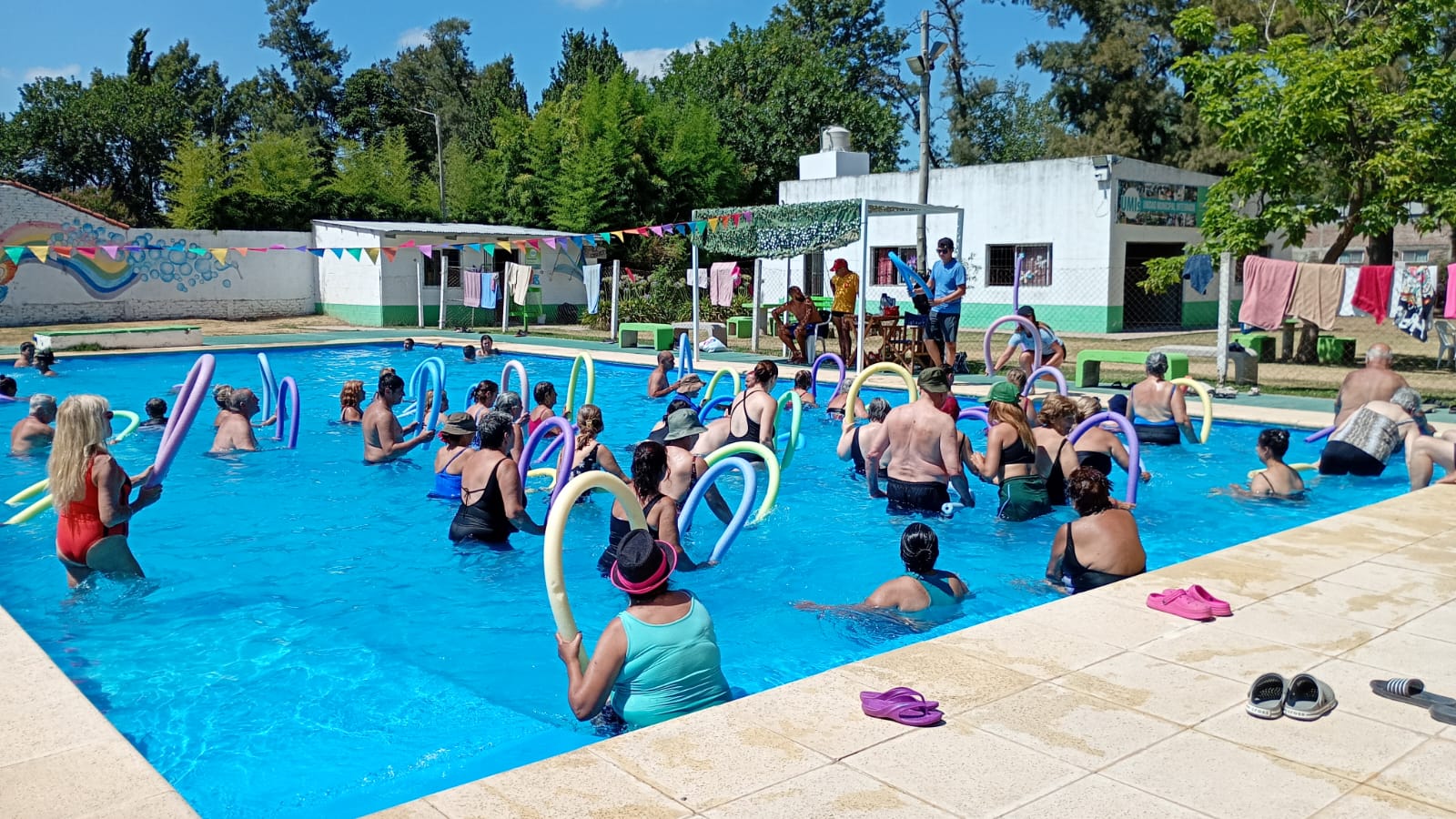 En la Pileta Municipal de la UMI del barrio Bernasconi, se desarrollan clases de aquagym destinadas a adultos y adultas mayores. En esta oportunidad, dialogamos con los profesores a cargo, Maura y Martín, y con Rosana, una de las vecinas que participa de la actividad.