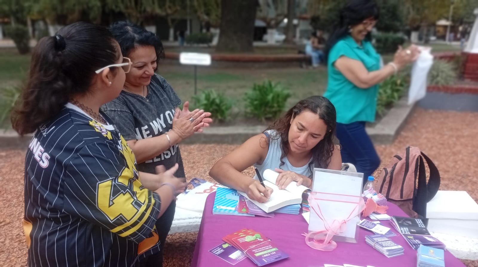 Según detallaron sus organizadoras, el encuentro en la plaza tuvo un carácter de reflexión colectiva. Durante la jornada se desarrollaron distintas actividades, entre ellas charlas, distribución de material de concientización y la participación de mujeres que trabajan en diversas problemáticas sociales. Además, se realizó el sorteo de un libro de la escritora Melisa Sole, que aborda distintas formas de violencia. Pese a un contexto político adverso y de recrudecimiento de la violencia, Sara Vizgarra resaltó: “seguimos con muchas ganas de luchar y defender nuestros derechos”. “No es un dia de regalos ni de bombones, es un dia de recordar a tantas mujeres víctimas de violencia y de femicidio”.