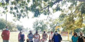 PINTADA DE BANCOS ROJOS EN LA PLAZA DEL BARRIO MARTÍN FIERRO