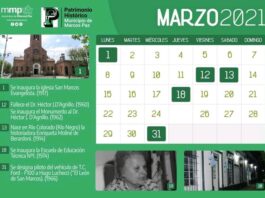 El día de hoy el área de Patrimonio Histórico y Cultural de Marcos Paz presentó el nuevo calendario anual impreso en la Casa de la Cultura. Tendrá distribución gratuita en las escuelas, instituciones locales y personas interesadas que podrán retirarlo, también gratuitamente por la Casa de la Cultura.