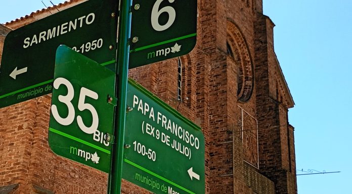 En la esquina del Santuario San Marcos Evangelista, se realizó el acto de imposición de nombre. La antigua calle 9 de julio toma el nombre de Papa Francisco en homenaje a “un hombre que dedicó toda su vida a predicar la palabra de dios y que vivió como predicaba”.