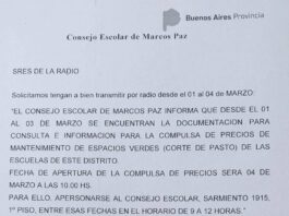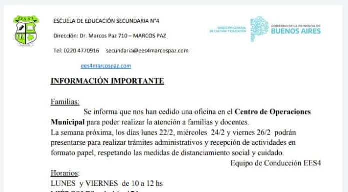 Pueden chequear la siguiente información en la página del Municipio de Marcos Paz: https://www.facebook.com/139565012790803/posts/3310406112373328/