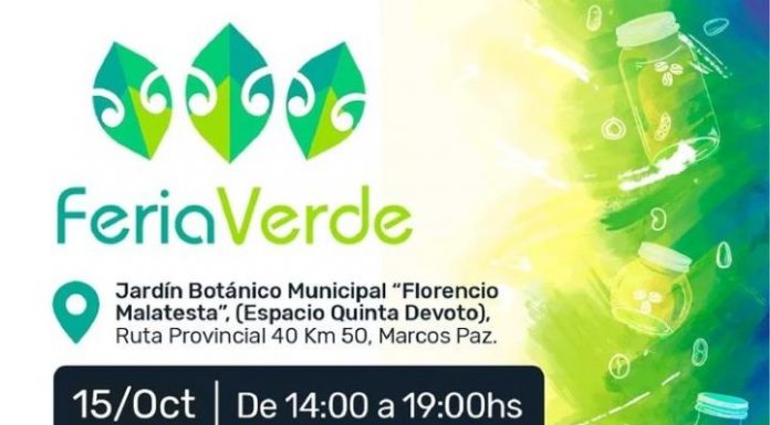 Este sábado desde las 14hs. se efectuará la Feria Verde en el Jardín Botánico de Marcos Paz, Ruta 40 altura del kilómetro 50, con artesanos, emprendedores, productos agroecológicos y sustentables y el show musical a cargo de Musiqueiros. Paola Bamba, coordinadora, comentó que tendrá un sabor especial porque es el día previo a los festejos del día de la...