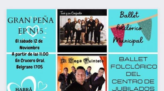 Este sábado se hará una peña a partir de las 11hs en la Escuela N° 15 del barrio La Trocha, en la calle Irigoyen y Crucero General Belgrano. Gastón Tejada, vice director, afirmó que contarán con un buffet donde habrá pollo, choripanes, panchos, hamburguesas y empanadas para comer en el lugar, con opción para llevar a su domicilio. Además...