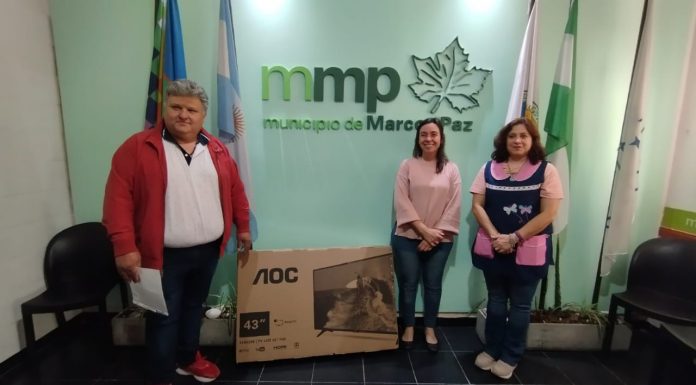 Esta mañana se hizo entrega de un televisor Smart para la escuela N°12 ´René Favaloro´ del barrio Torchiaro, con la presencia de Verónica Mc Loughlin, concejala; Mariela Molina, directora de la escuela y Alberto Ferrando, del equipo de Orientación Escolar.
