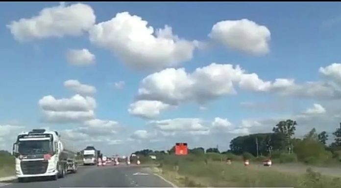 En un recorrido por la Ruta 6, km 127, se informa que hay solo una mano habilitada en sentido Cañuelas a Luján debido a los arreglos que se realizarán en la ruta con el fin de hacer una reparación profunda del pavimento.