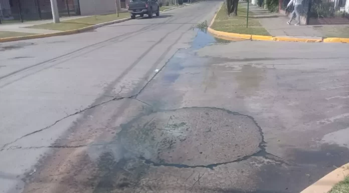 En calle Sarmiento, esquina Rodríguez Peña, se notifica el reclamo de varios vecinos de la cuadra que informaron el aumento de caídas y resbalones por verdín, debido a una importante perdida de agua en la cuadra.