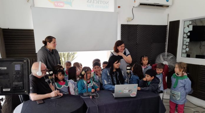El Jardín 913 visitó esta mañana el estudio del Sistema de Medios Públicos, en el marco del proyecto escolar “A parar la oreja”, con el objetivo de generar cercanía entre los y las estudiantes, sus familias y la radio, proponiendo participación activa, en el rol de oyentes y también el rol de productores de contenido.