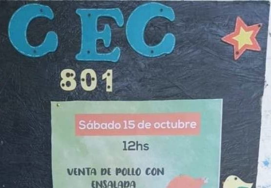 Este sábado a partir del medio día el CEC 801 (Centro de educación complementaria) organiza una pollada a beneficio de la institución ubicada en Libertad 1934, para la compra de artículos de limpieza y de librería.