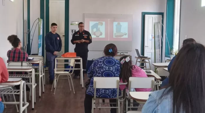 Esta tarde en la sede del Polo Universitario, ubicada en calle Bartolomé Mitre 55, esquina Belgrano, se realizó una capacitación gratuita de RCP (reanimación cardio pulmonar) y primeros auxilios a cargo del personal de Bomberos Voluntarios de Marcos Paz.