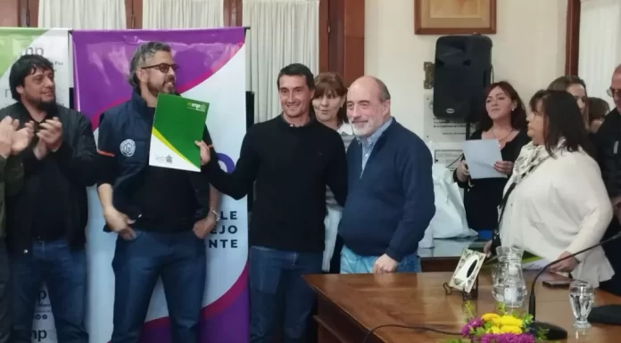 El ministro de Trabajo de la provincia de Buenos Aires, Walter Correa, y el intendente municipal, Ricardo Curutchet, estuvieron en el consejo deliberante para la asunción de los nuevos representantes gremiales de asuntos municipales.